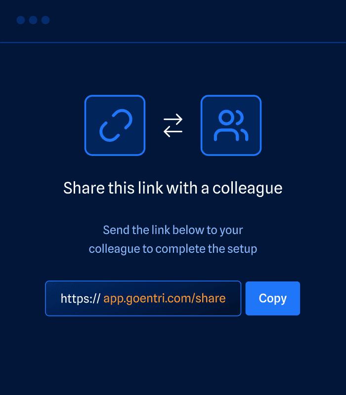 Stop playing a game of telephone. Entri Connect enables users to quickly forward the setup process to the right person on their team.