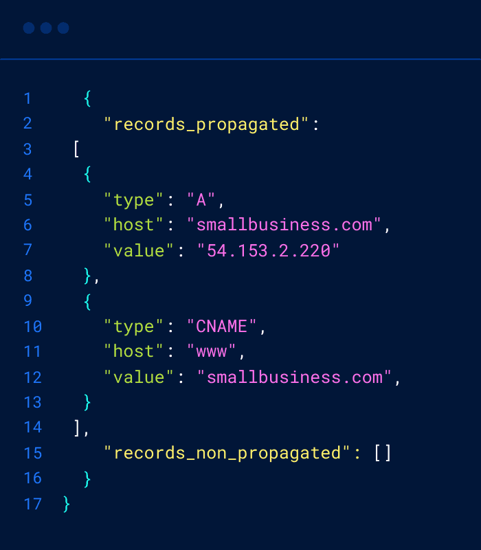 Just pass your desired DNS settings using the Entri configuration object. Then, Entri will apply these settings for your end user.