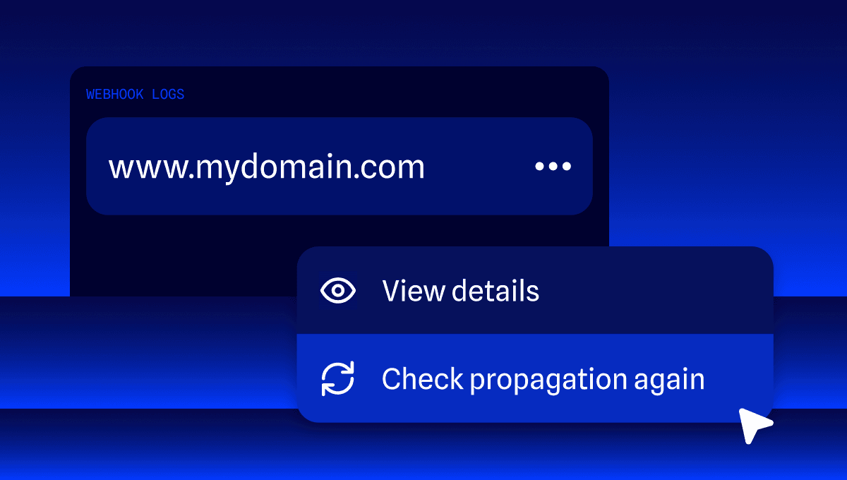 Now you’re able to retrigger the propagation check from the webhooks’ logs page within the Entri customer dashboard. This will check for the current propagation status and trigger a new webhook message to your backend.
